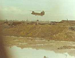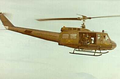 HHT Avn Platoon Slick leaving the Fire Base, Nui Ba Dinh in the background. |