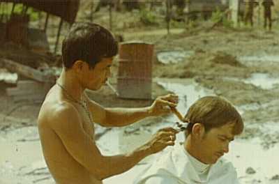 Haircut at the 2/11 Firebase in the Heart Shaped Woods. |
