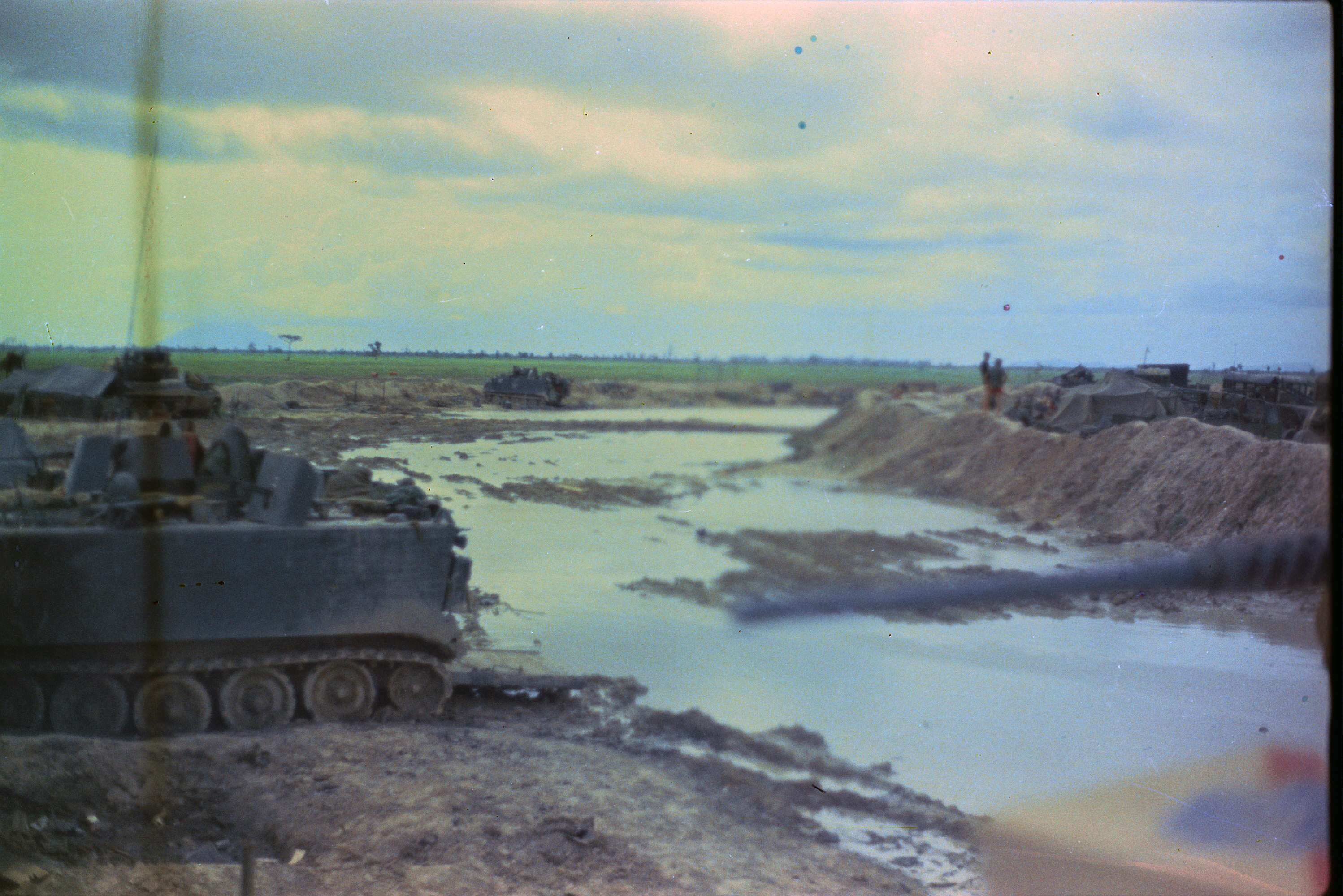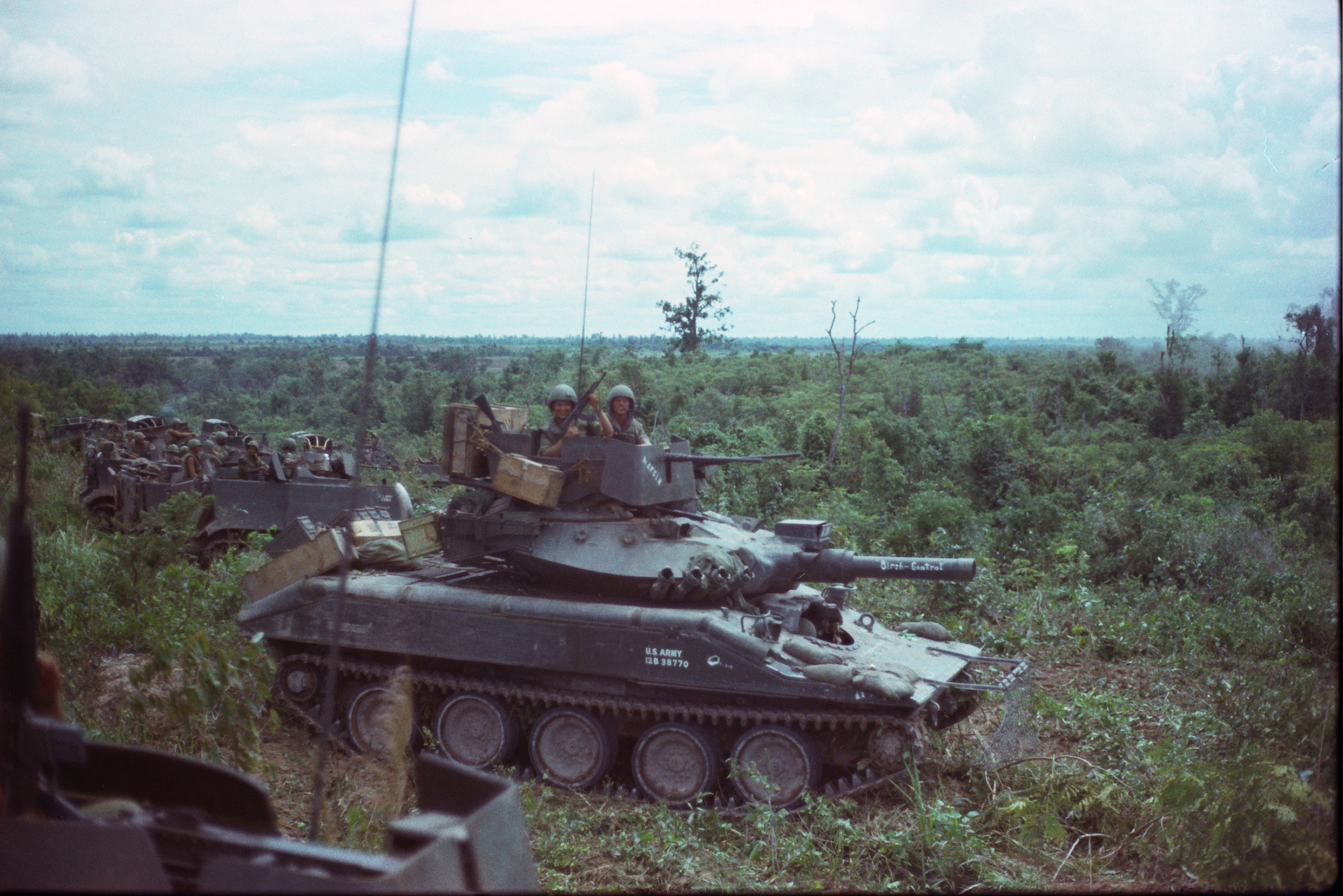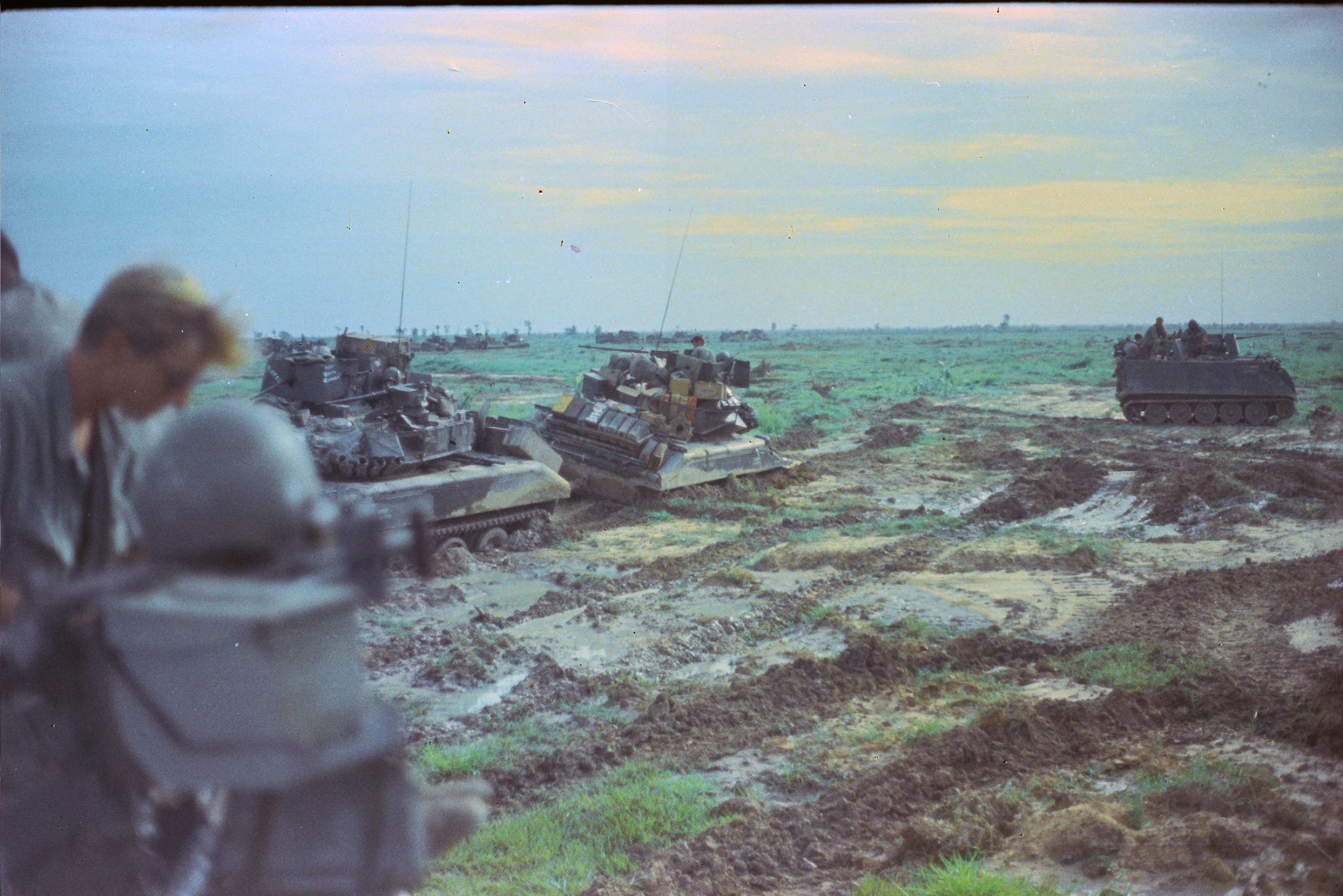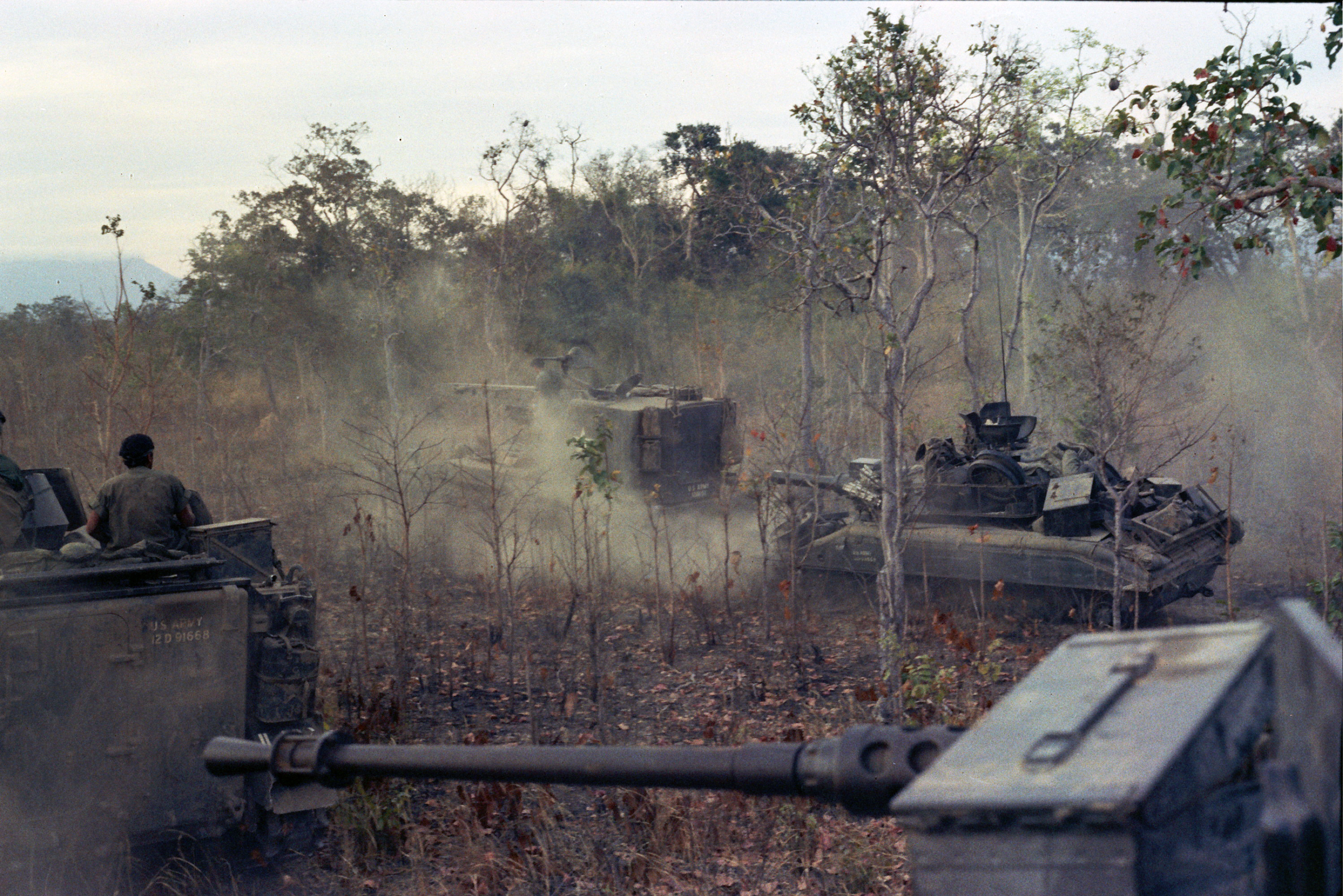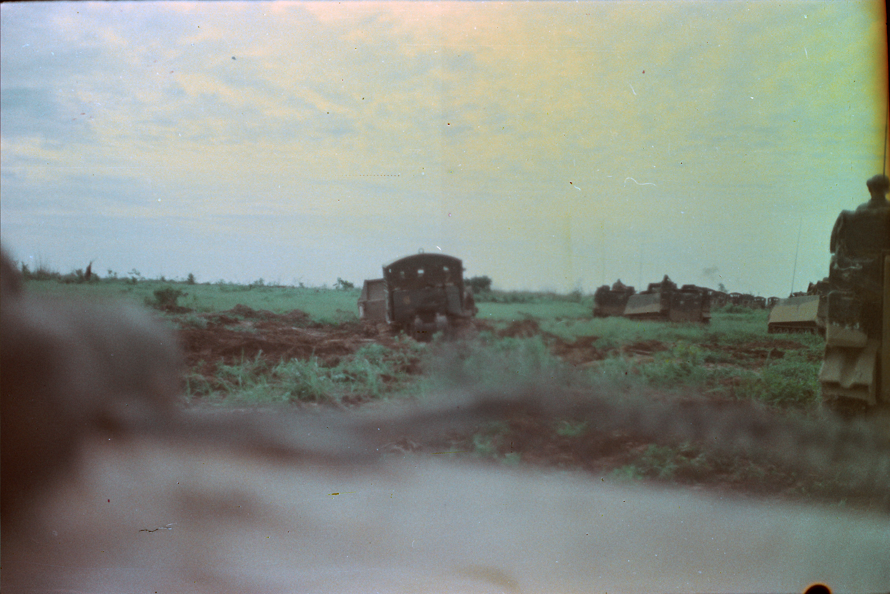 Hull of ACAV 25th infantry in Ho Bo Woods Razorbacks visible on the Horzon |