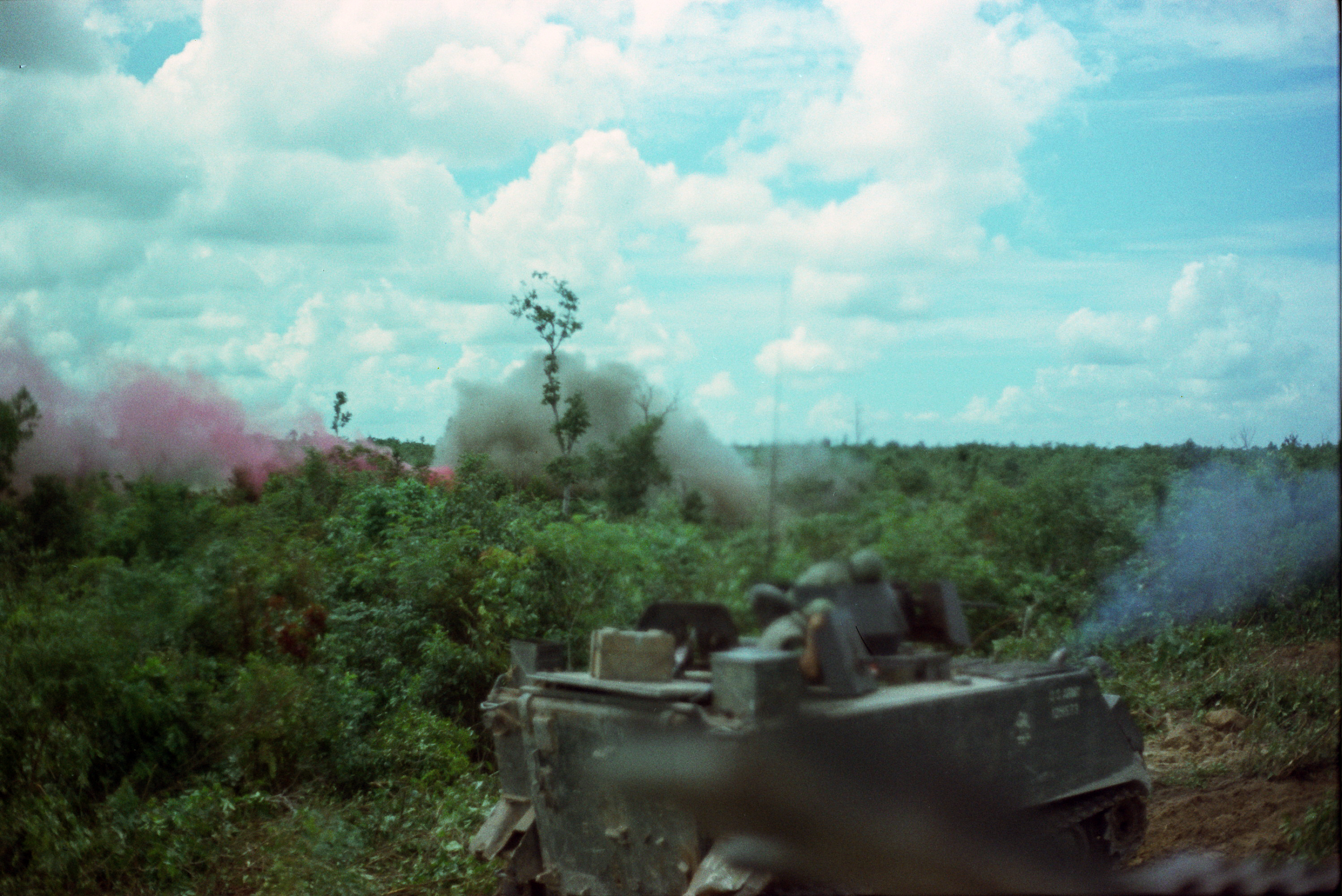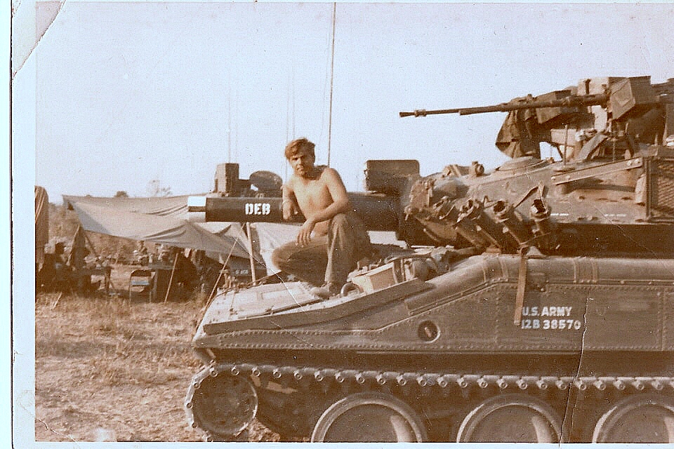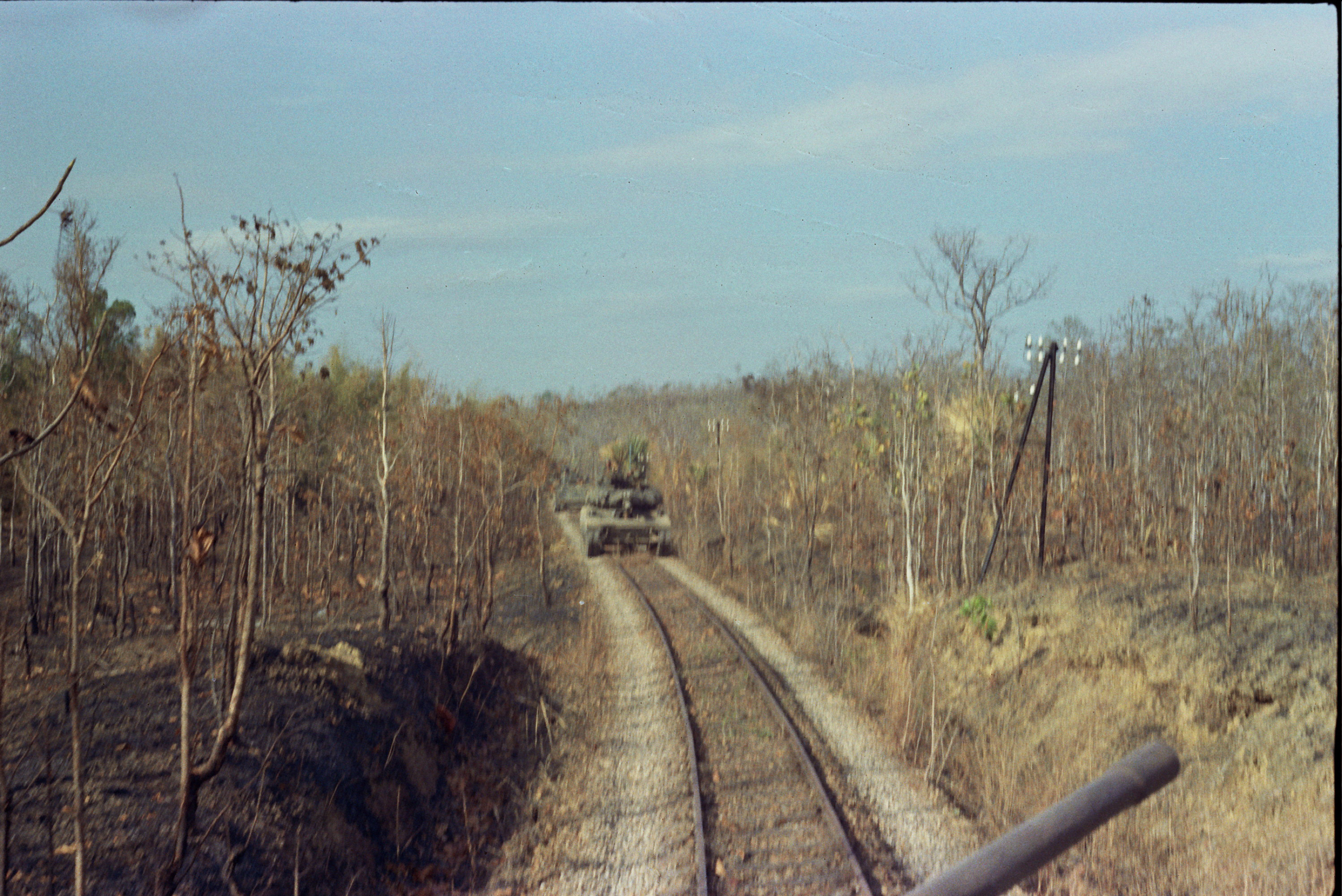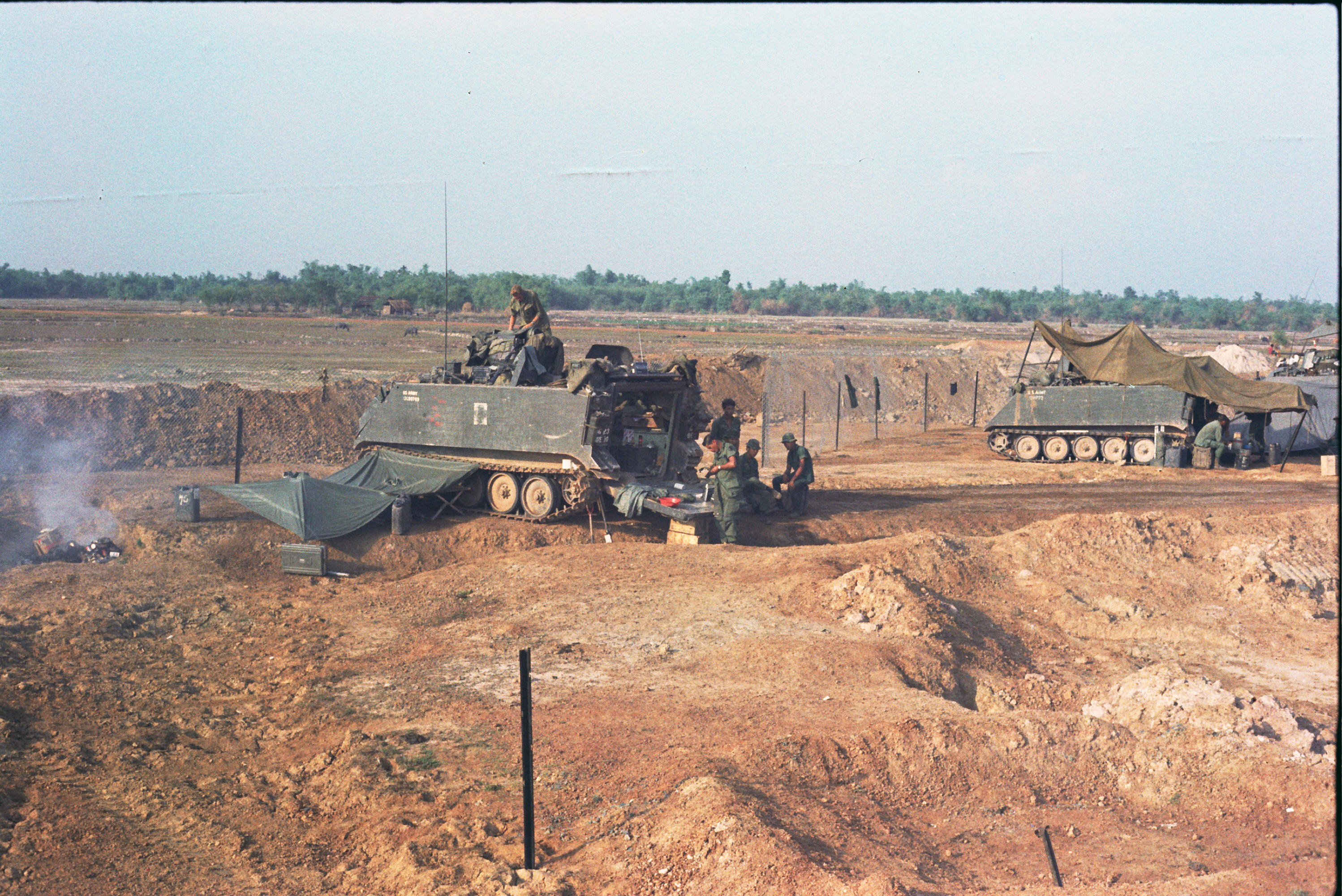 Hull of ACAV 25th infantry in Ho Bo Woods Razorbacks visible on the Horzon |