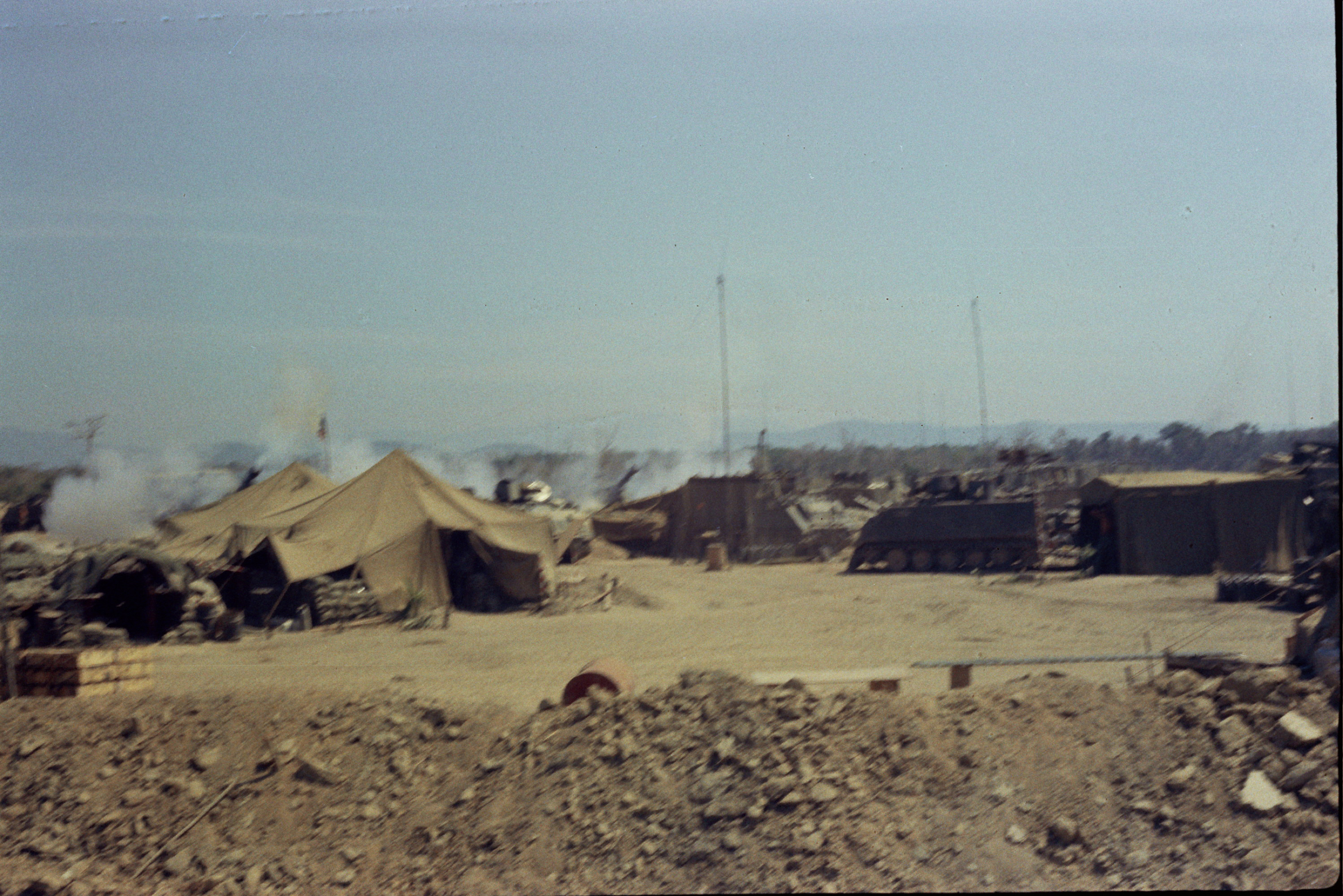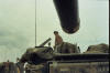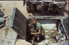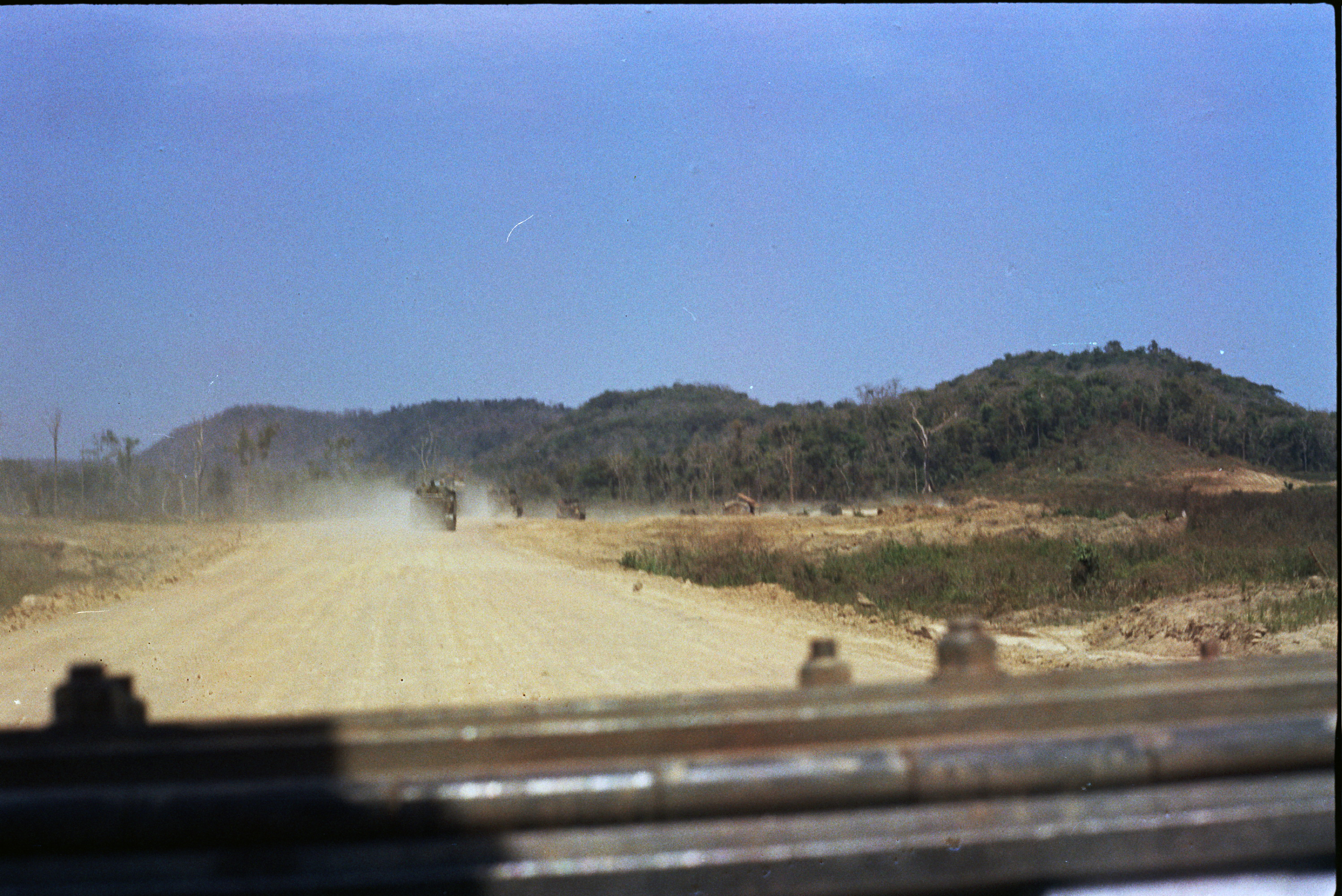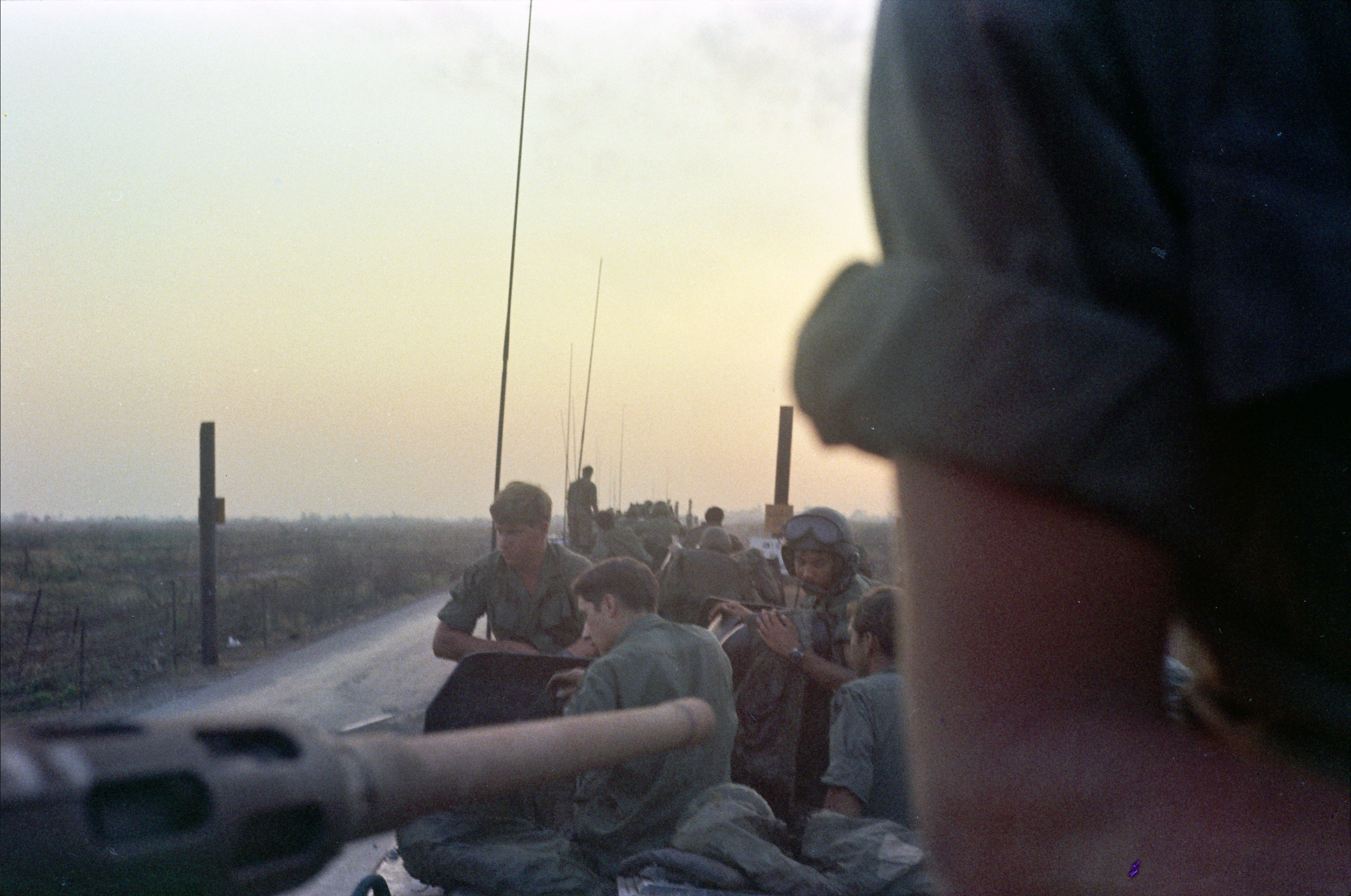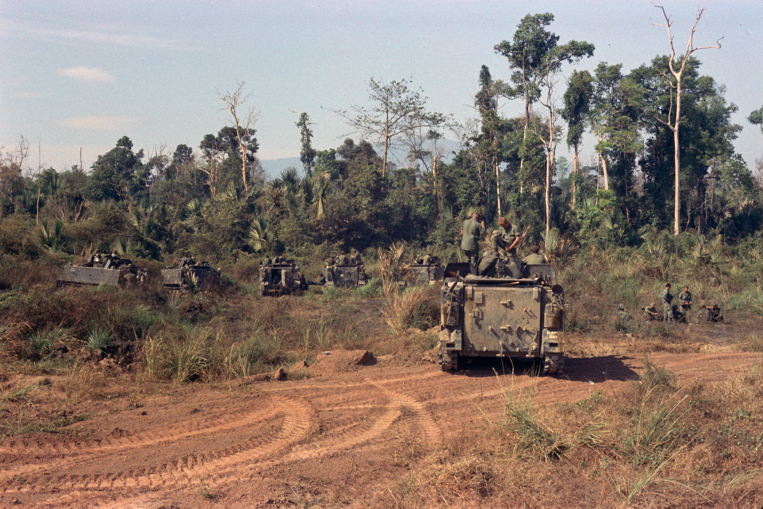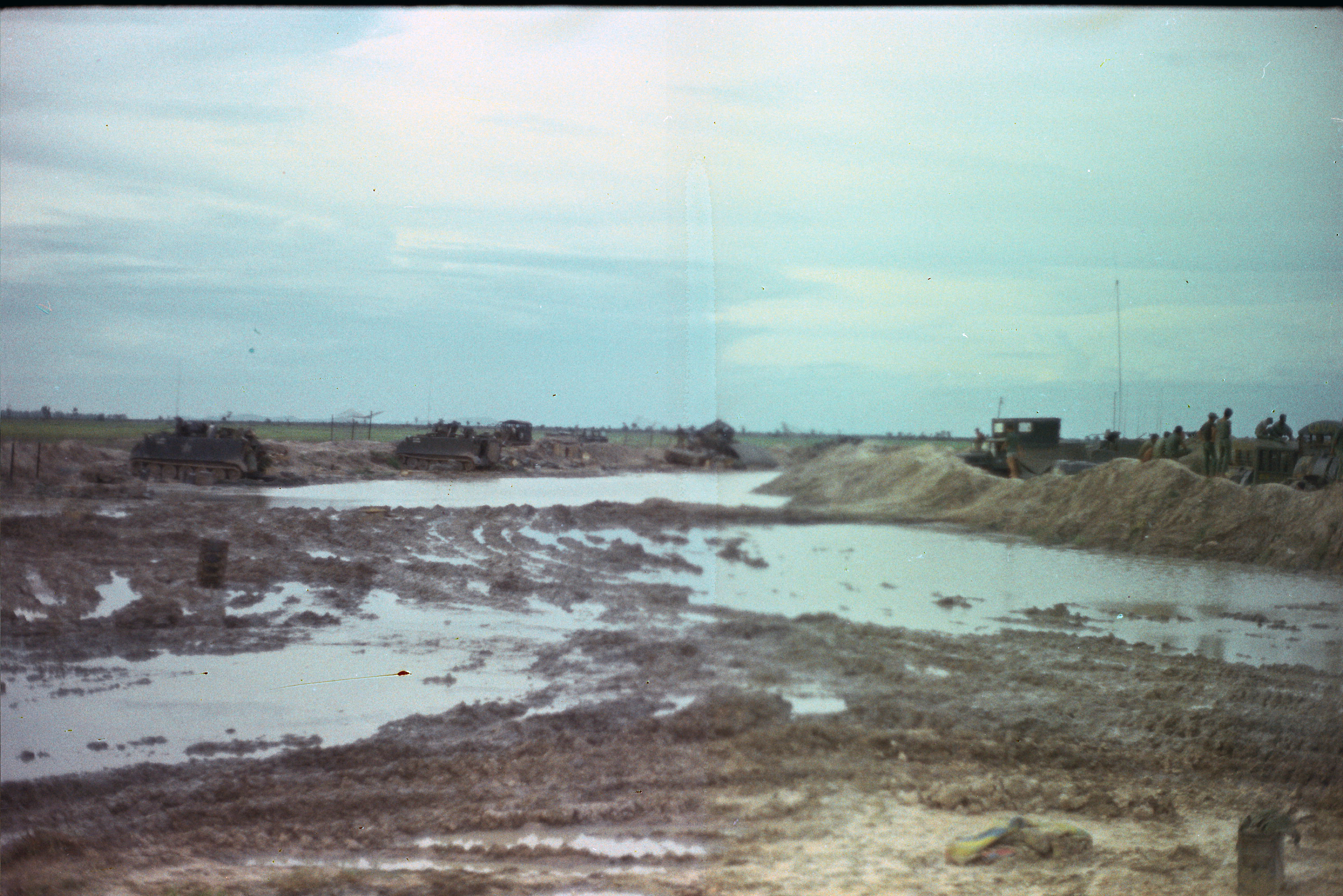Hull of ACAV 25th infantry in Ho Bo Woods Razorbacks visible on the Horzon |