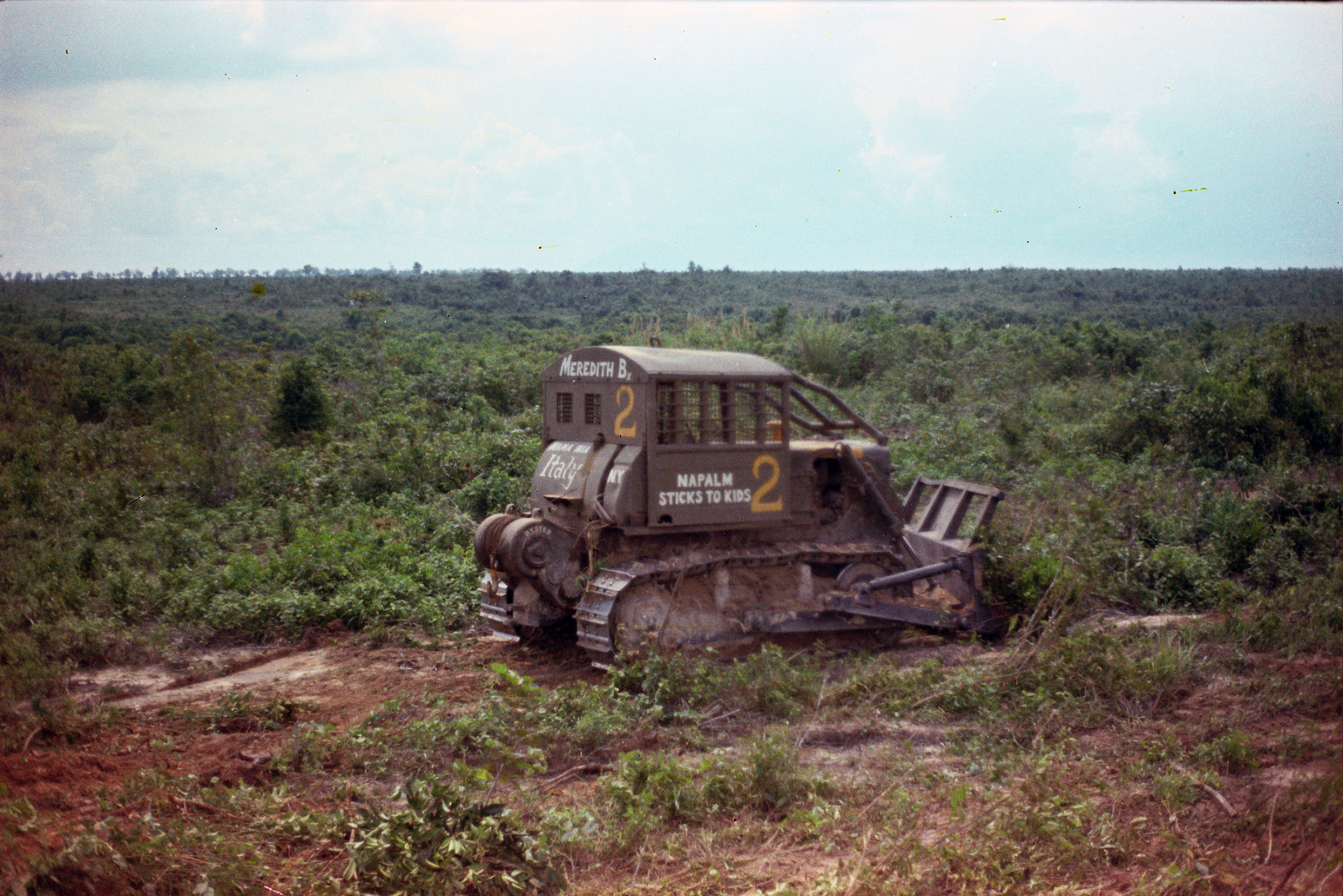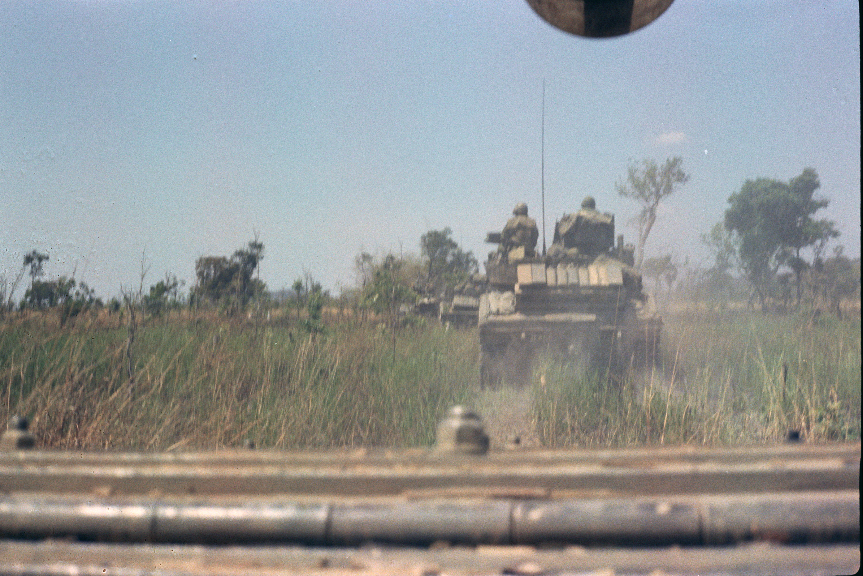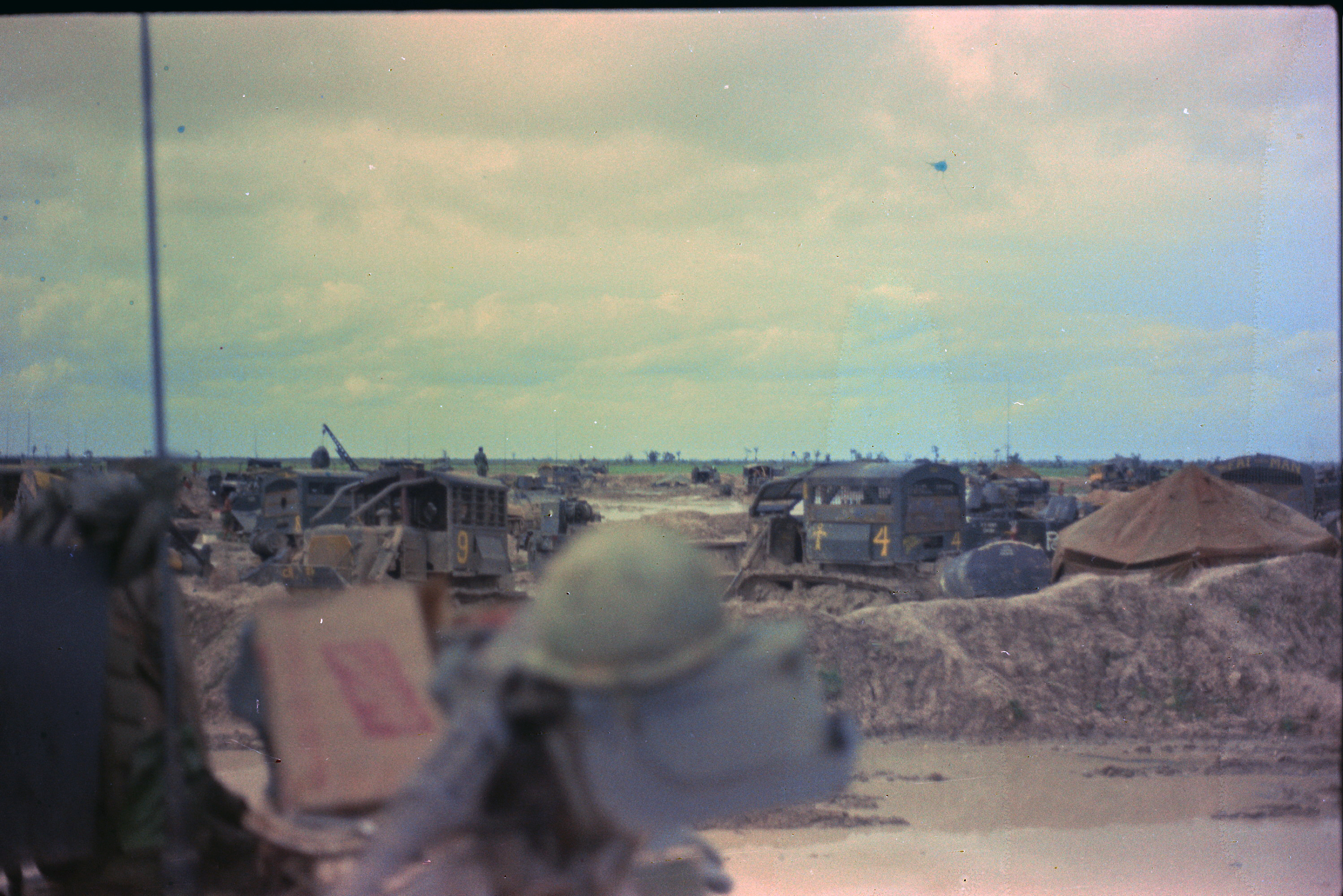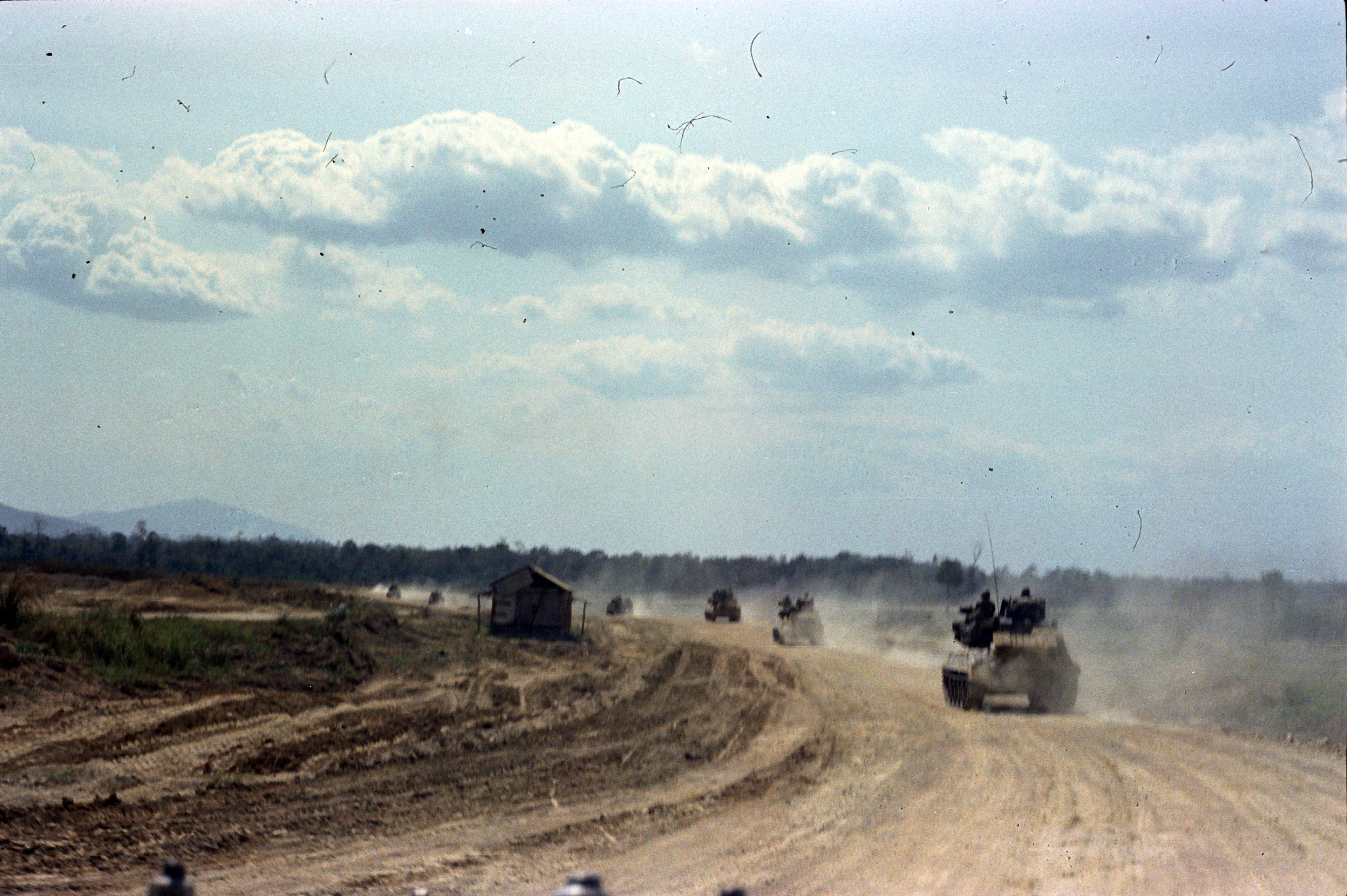 Hull of ACAV 25th infantry in Ho Bo Woods Razorbacks visible on the Horzon |