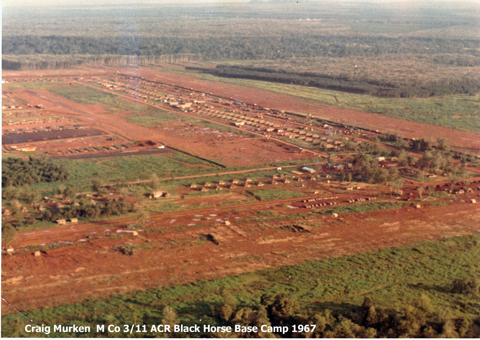 I took this pic in 67 it shows the 3rd squadron section of the blackhorse base camp, xuan loc, in 67