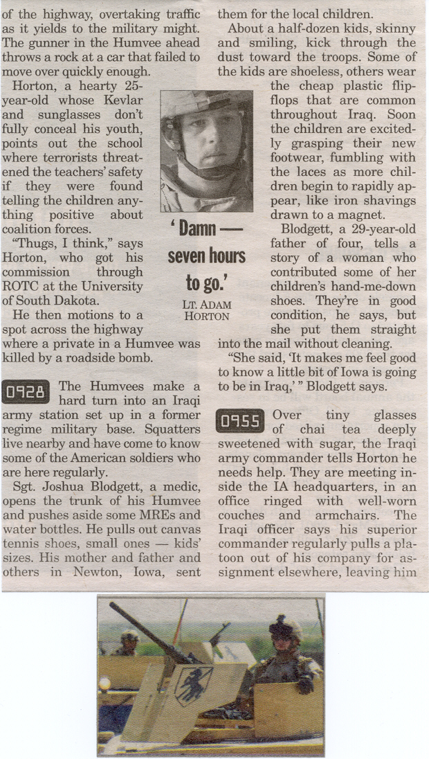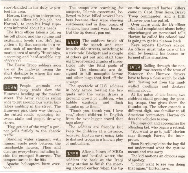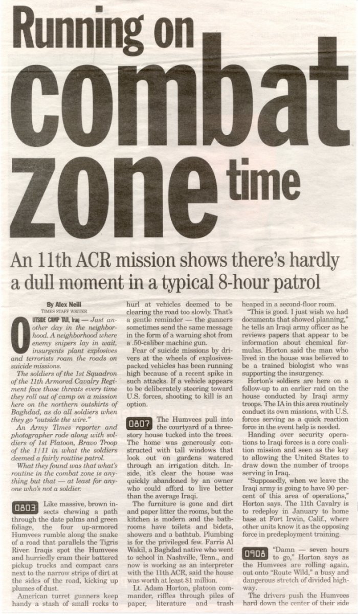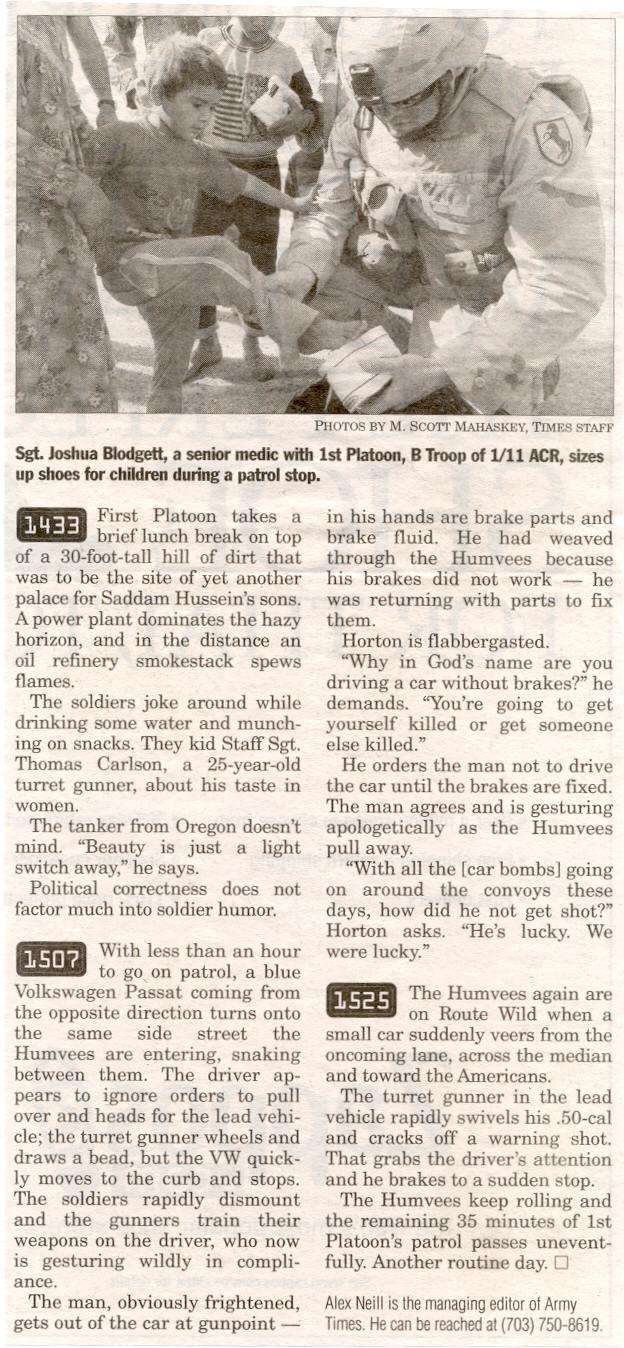 Here's an article from the June 6, 2005, edition of the Army Times about B Troop on patrol in Iraq.