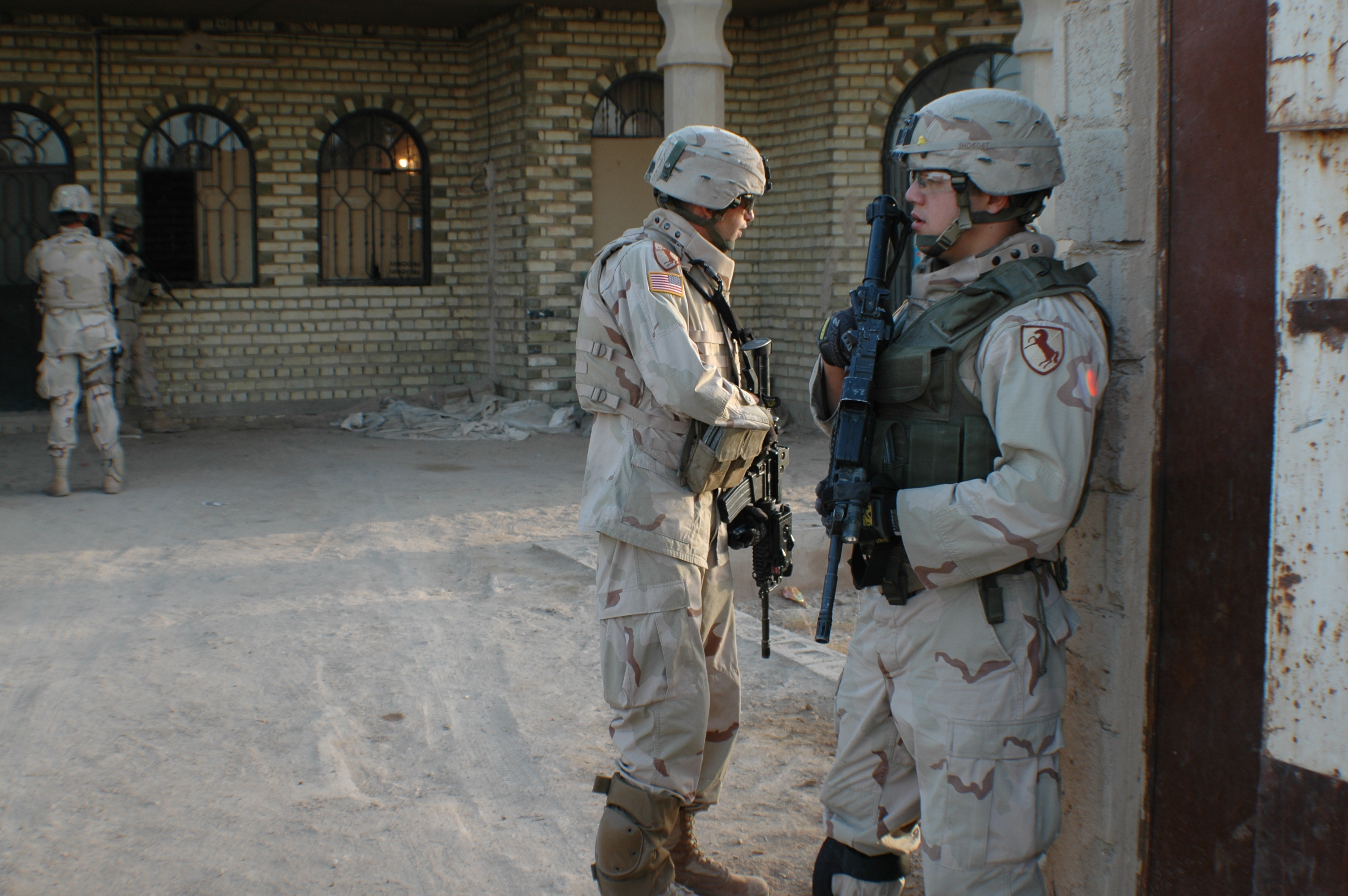Checking out a house just outside Abu Ghraib Prison. 1/11ACR 23 Sept 2005 |
