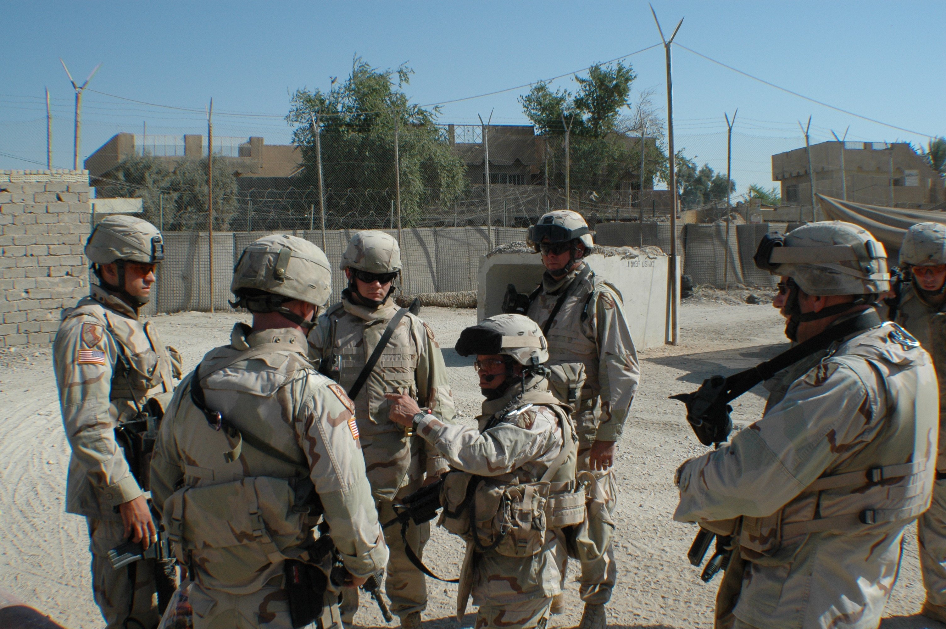 155th Brigade Combat Team, Mississippi Guard briefs team prior to patrol in the streets of Diyarah. 2/11 ACR Attached. These guys were tough warriors. (PHOTO JERRY