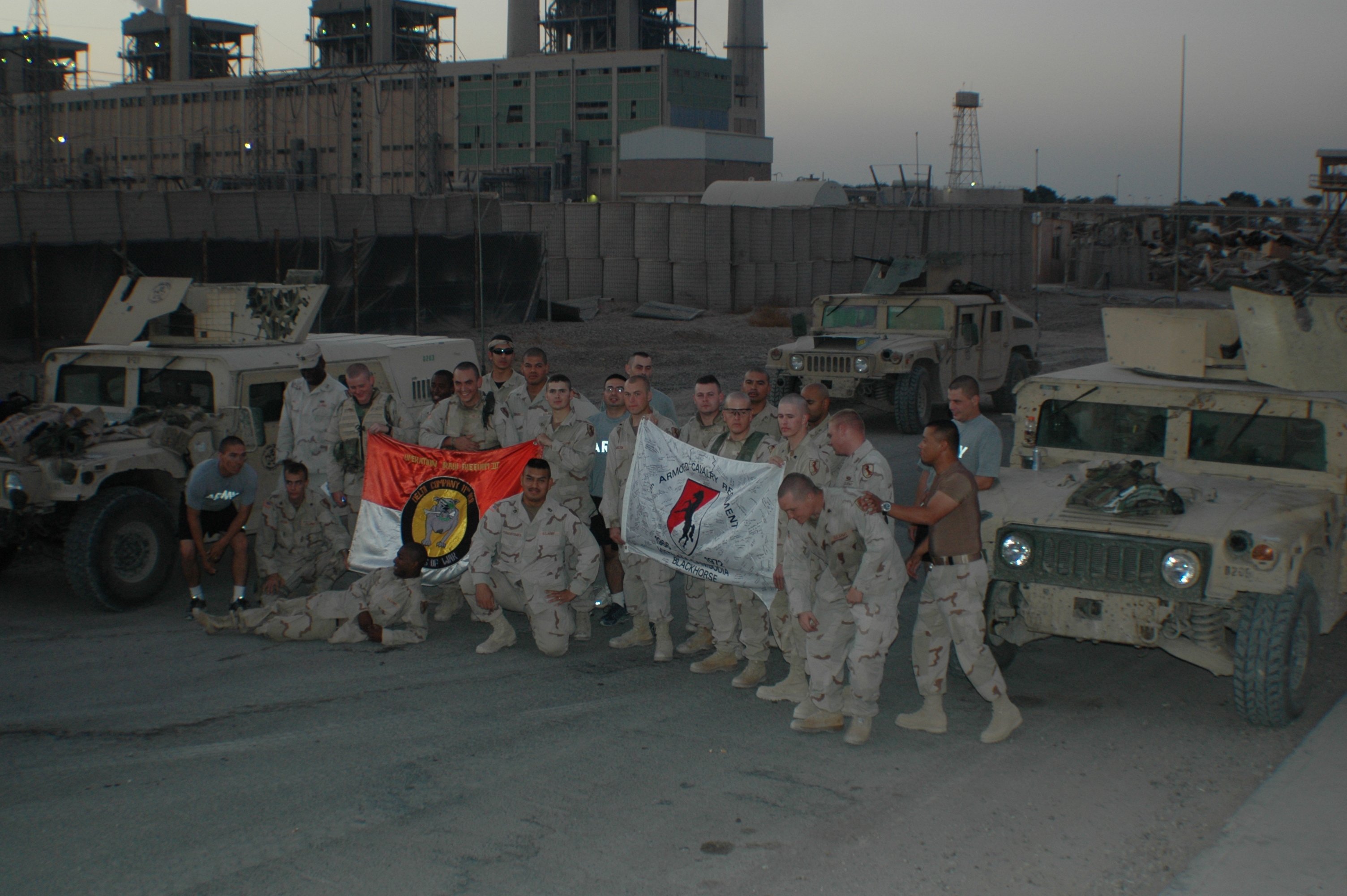 South of Baghdad, Iraq. 3 October 2005, Troops display D Co flag and 11th ACVVC Flag. (PHOTO JERRY WILLIAMSON) |