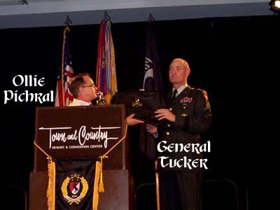 Ollie presents Gen. Tucker with personalized