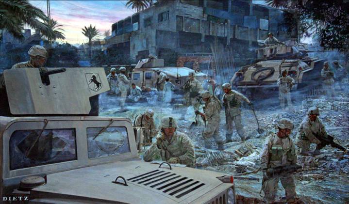 Last month we received the original oil painting from the artist Dietz commemorating the Regiment's participation in Operation Iraqi Freedom III. In the next few weeks, the Regiment will receive 750 prints. 300 have already been sold with another 450 available for purchase. Each print sells for $125.00 with the proceeds of the sale going to the local Fort Irwin Chapter of the Blackhorse Association's Iraqi Hero Scholarship fund. If you are interested in supporting this effort, please contact Alex Silverman (Fort Irwin Sutler Store) via email at alexsilverman2005@yahoo.com
