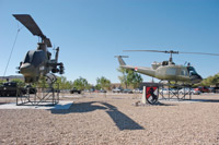Trees in memory of fallen 11th ACR soldiers and vehicles recounting the regiment's history dot Jerry Wayne Wickam park at Fort Irwin. The ‘Yano helicopter’ sits at the